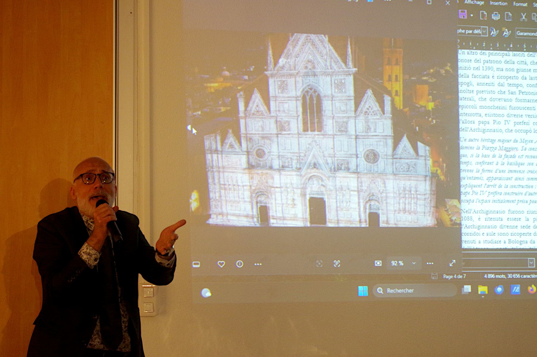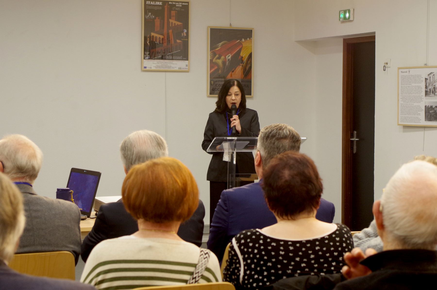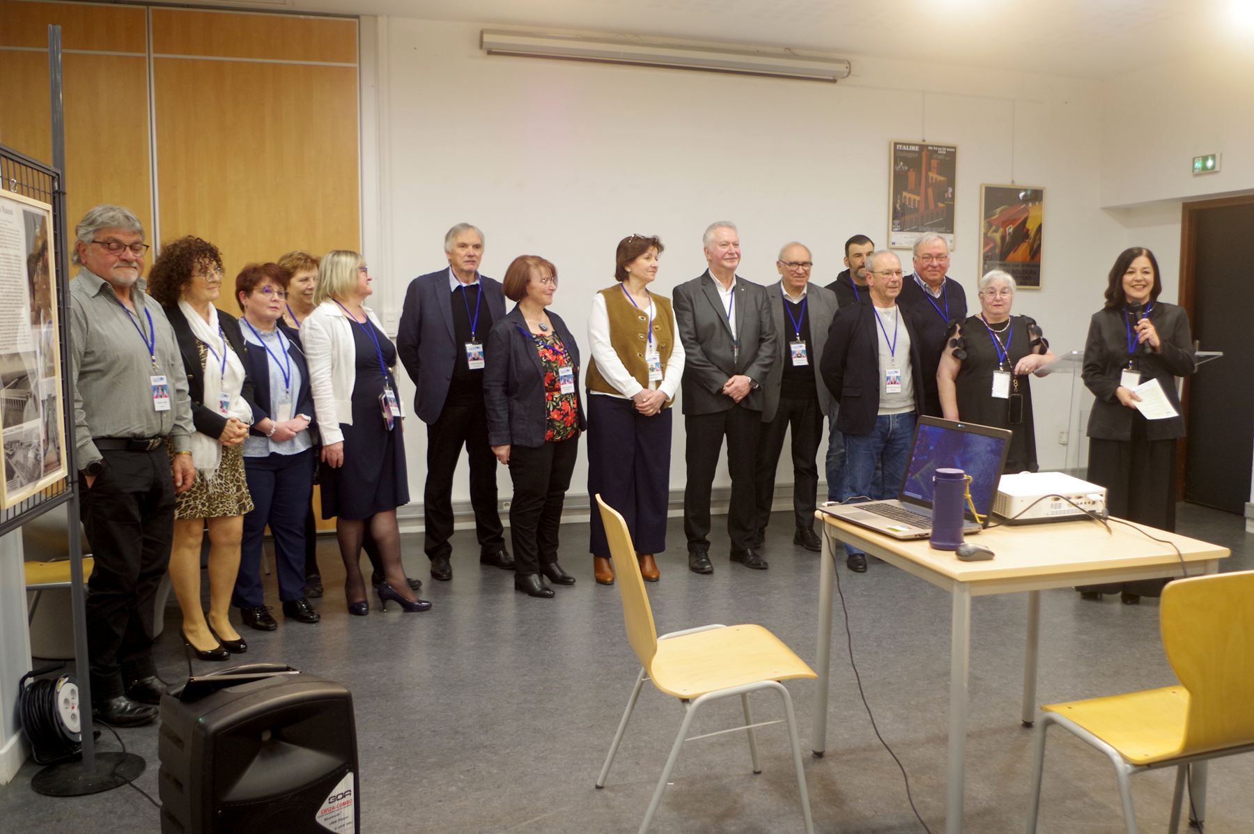 Giovanna Farina Incredulo, présidente d’ACFI, a présenté cette nouvelle semaine culturelle d’Italire consacrée à la ville de Bologne, capitale de l’Emilie-Romagne. Elle se traduit par une grande exposition de 94 panneaux préparée par Christian Schaack pour nous faire découvrir les richesses de cette ville trop méconnue des touristes. Elle a ensuite rappelé les cinq conférences qui se succéderont jusqu’au dimanche 29 mars. Puis l’équipe des bénévoles a salué son public : parmi ces bénévoles, les conférenciers mais aussi ceux qui ont installé l’exposition, ceux qui veillent au bon déroulement de ces journées et celles et ceux qui préparent au quotidien les spécialités italiennes dégustées en fin de séance.