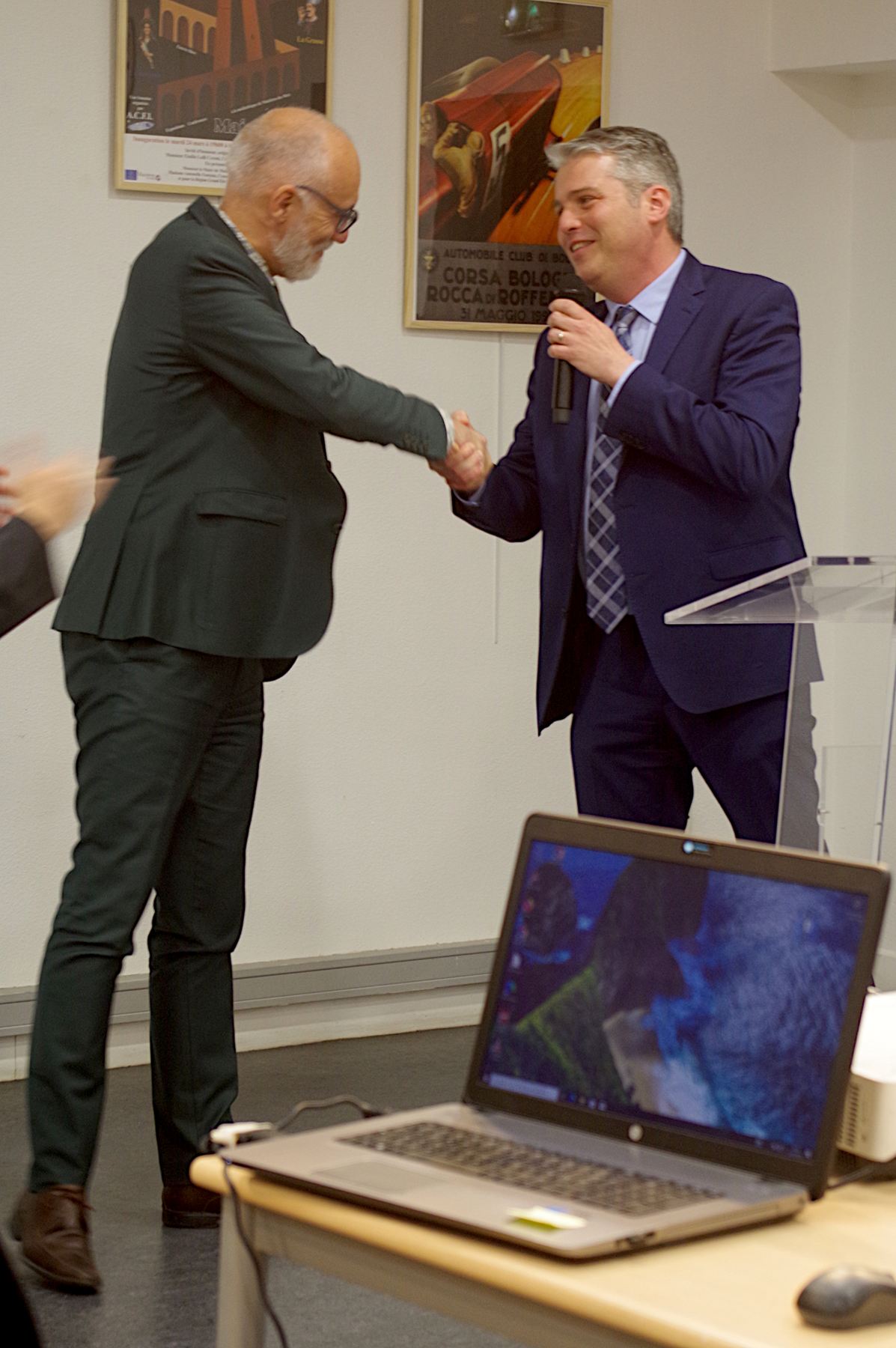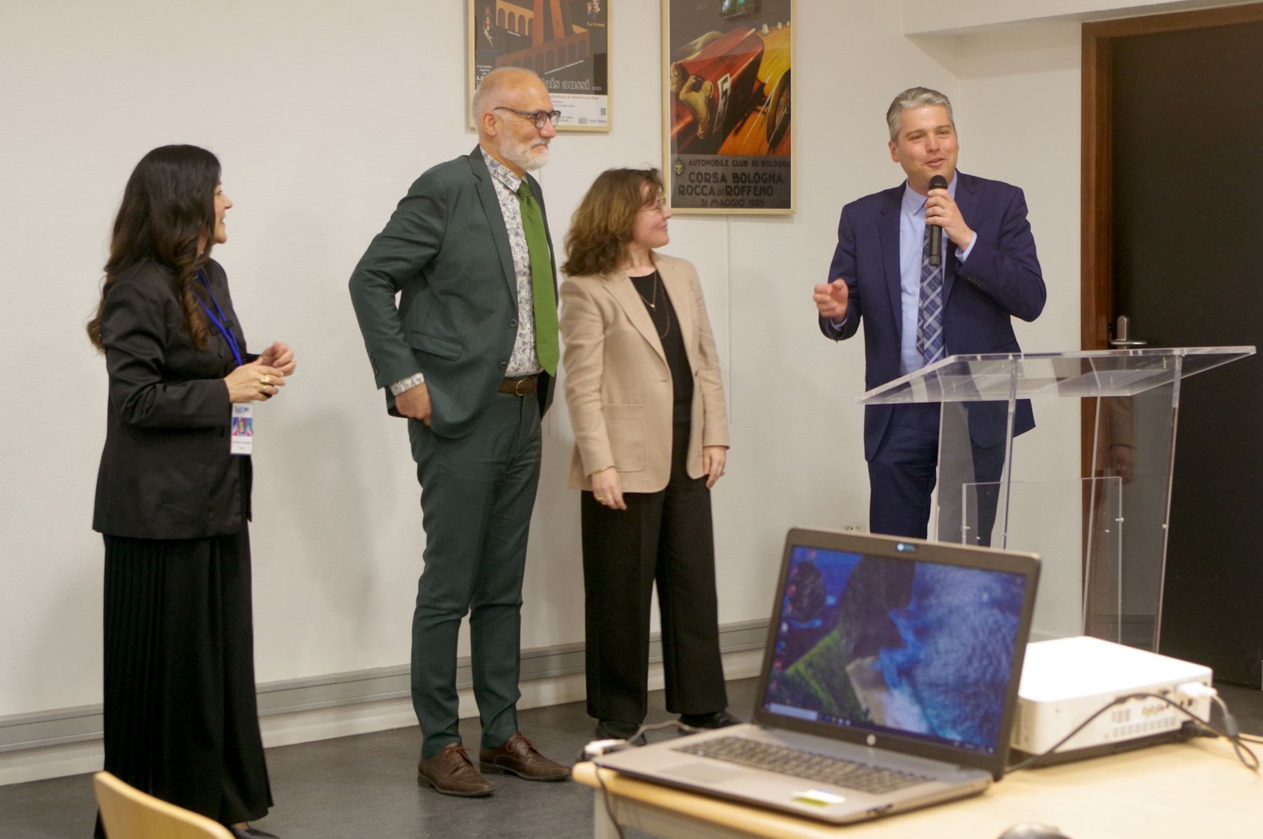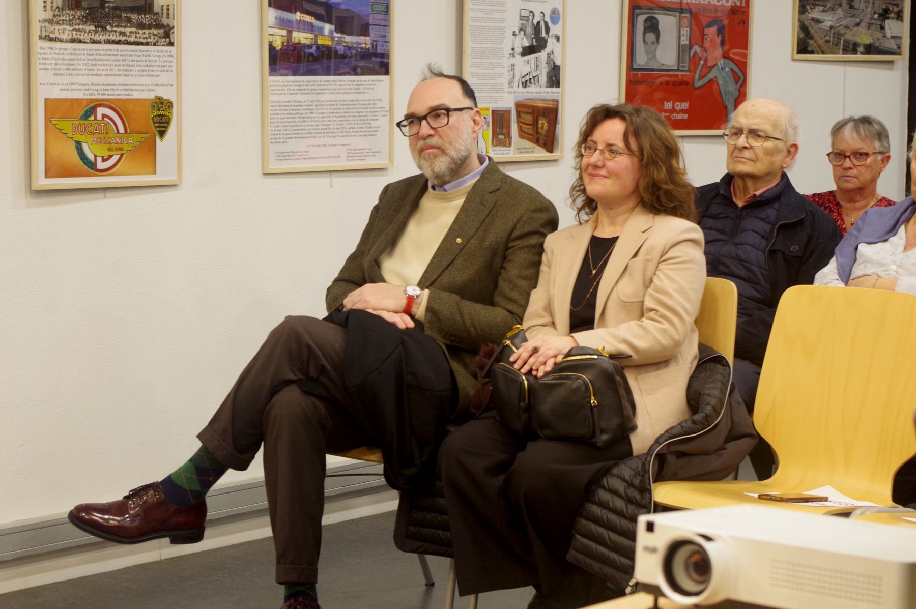 Giovanna Farina Incredulo, présidente d’ACFI, a présenté cette nouvelle semaine culturelle d’Italire consacrée à la ville de Bologne, capitale de l’Emilie-Romagne. Elle se traduit par une grande exposition de 94 panneaux préparée par Christian Schaack pour nous faire découvrir les richesses de cette ville trop méconnue des touristes. Elle a ensuite rappelé les cinq conférences qui se succéderont jusqu’au dimanche 29 mars. Puis l’équipe des bénévoles a salué son public : parmi ces bénévoles, les conférenciers mais aussi ceux qui ont installé l’exposition, ceux qui veillent au bon déroulement de ces journées et celles et ceux qui préparent au quotidien les spécialités italiennes dégustées en fin de séance.