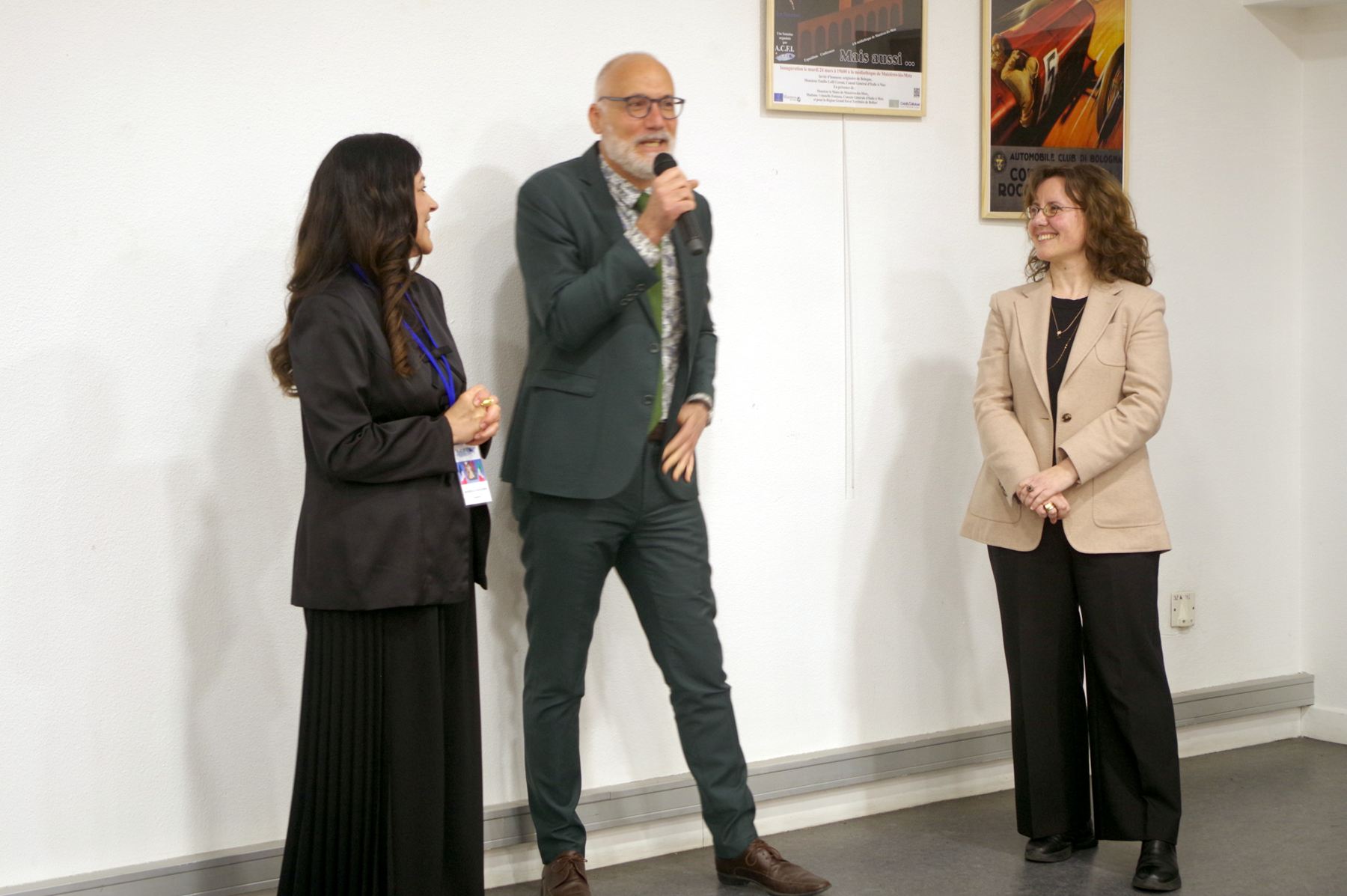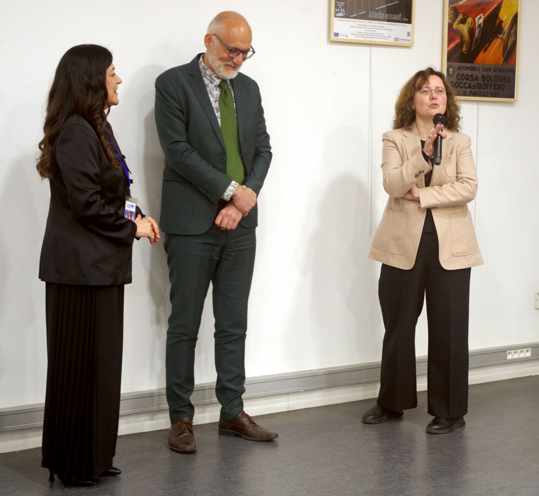 Julien Freyburger, maire de Maizières-lès-Metz, a rappelé le grand plasir qu’il a toujours à participer à cette inauguration, devant un public particulièrement nombreux aujourd’hui. Ayant parcouru l’exposition, il s’est promis de trouver une occasion de visiter à son tour la ville de Bologne, ville universitaire la plus ancienne d’Europe, et de goûter à sa cuisine. Il était très honoré d’accueillir ce 24 mars deux consuls d’Italie, Madame Fontana et Monsieur Lolli.