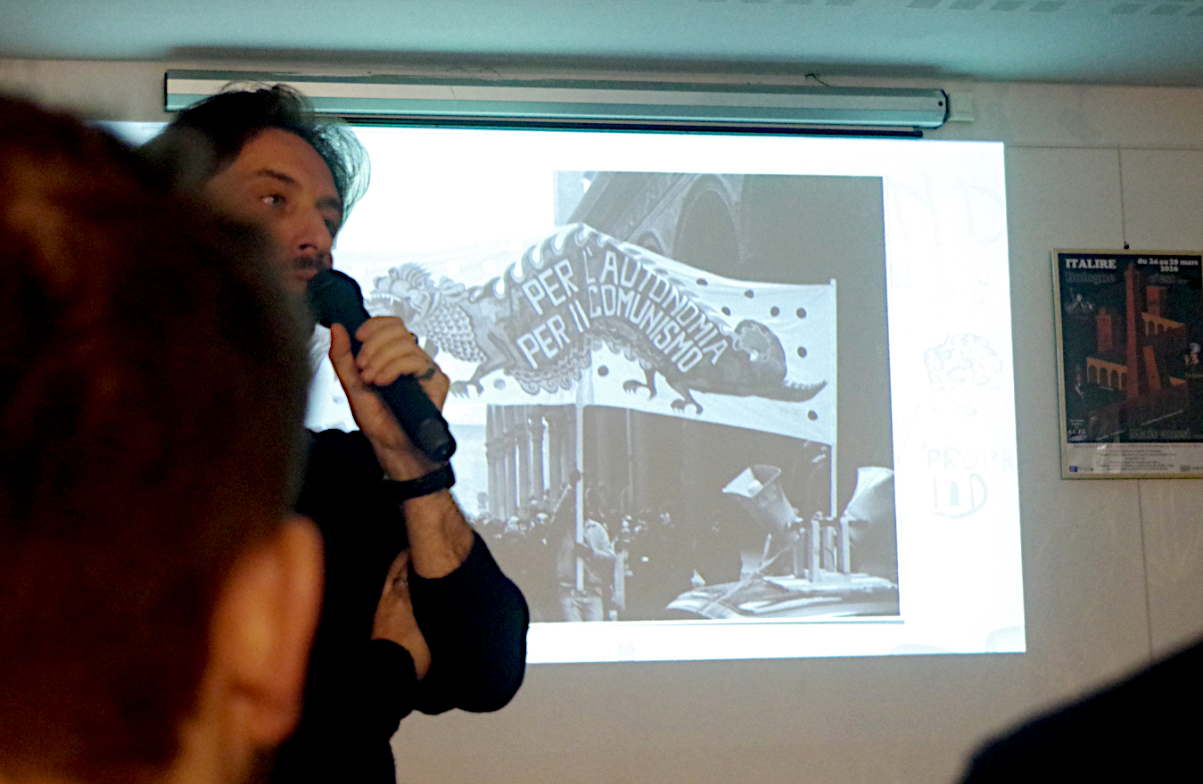 Ce mouvement de 1977 s’est manifesté à Bologne, ville emblématique du communisme italien et siège de la plus ancienne université occidentale. Au cours des années « 70 », après l’autunno caldo, le long 1968 italien italien, la gauche se fracture avec l’apparition de mouvements à la gauche du PCI (Parti communiste italien), des mouvements qui défendent l’autonomie et un communisme moléculaire, celui des quotidiens. Au cours de ces années, l’influence des enseignants du DAMS (centre universitaire des Disciplines des Arts, de la Musique et du Spectacle, né en 1971) parmi lesquels le sémiologue et romancier Umberto Eco. Il s’est traduit par : des revues underground, les premières radios libres, du théâtre expérimental, les premières scènes de punk rock italien, des graffiti et happenings des Indiani metropolitani (Indiens métropolitains).Mais, rattrapé par la montée des tensions de ces années de plomb, le mouvement se terminera tragiquement avec la mort d’un manifestant, Francesco Lorusso.