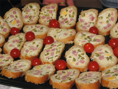 C’est bien le plat d’ici qu’Andrée Heitz a présenté et détaillé et proposé à la dégustation pour les membres de l’atelier de cuisine : la baguette de Saint Môret et jambon, une entrée apéritive délicieuse, aux couleurs multiples sur fond de fromage blanc.