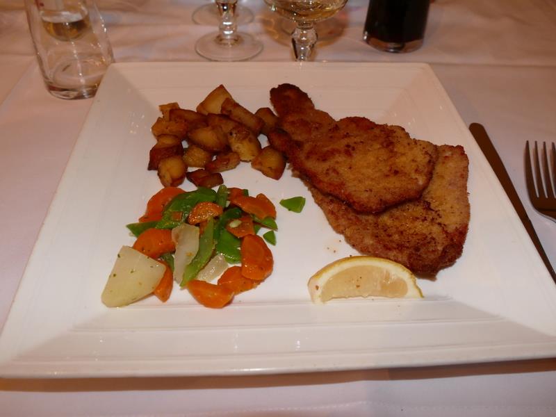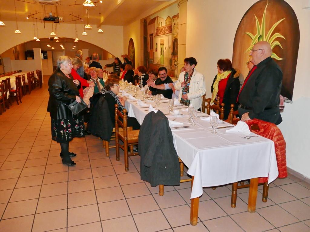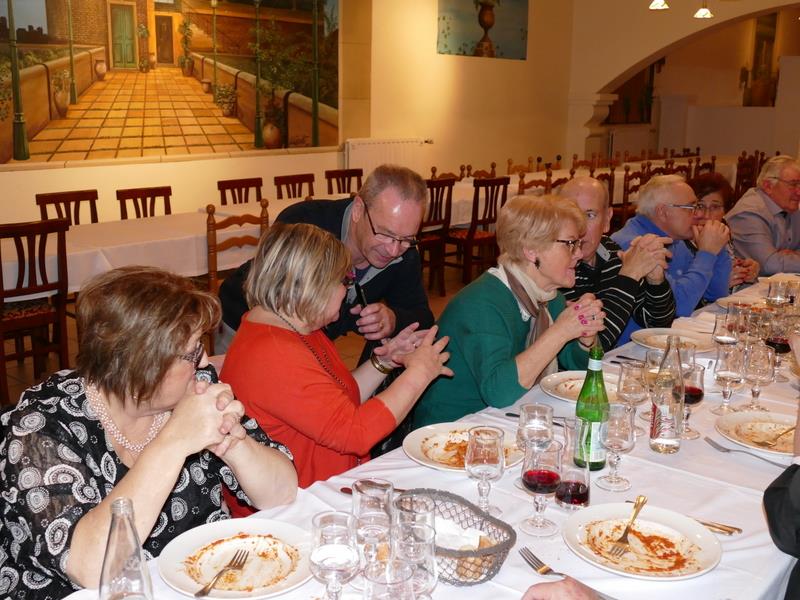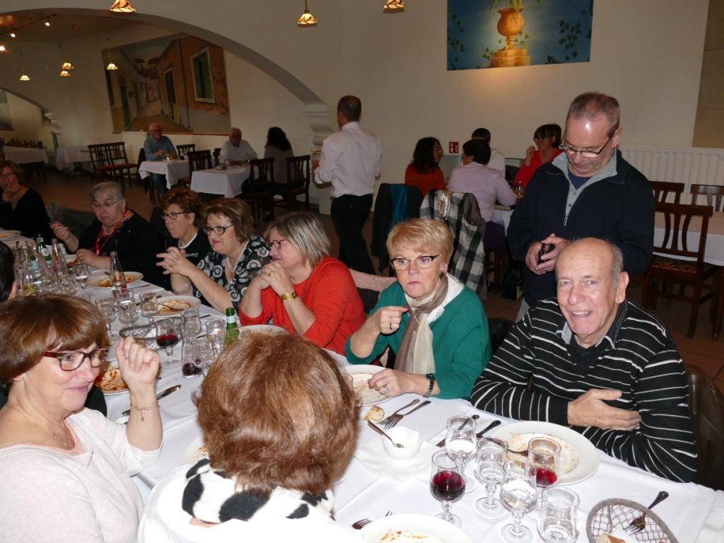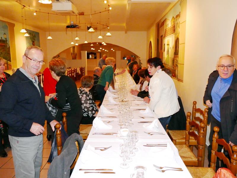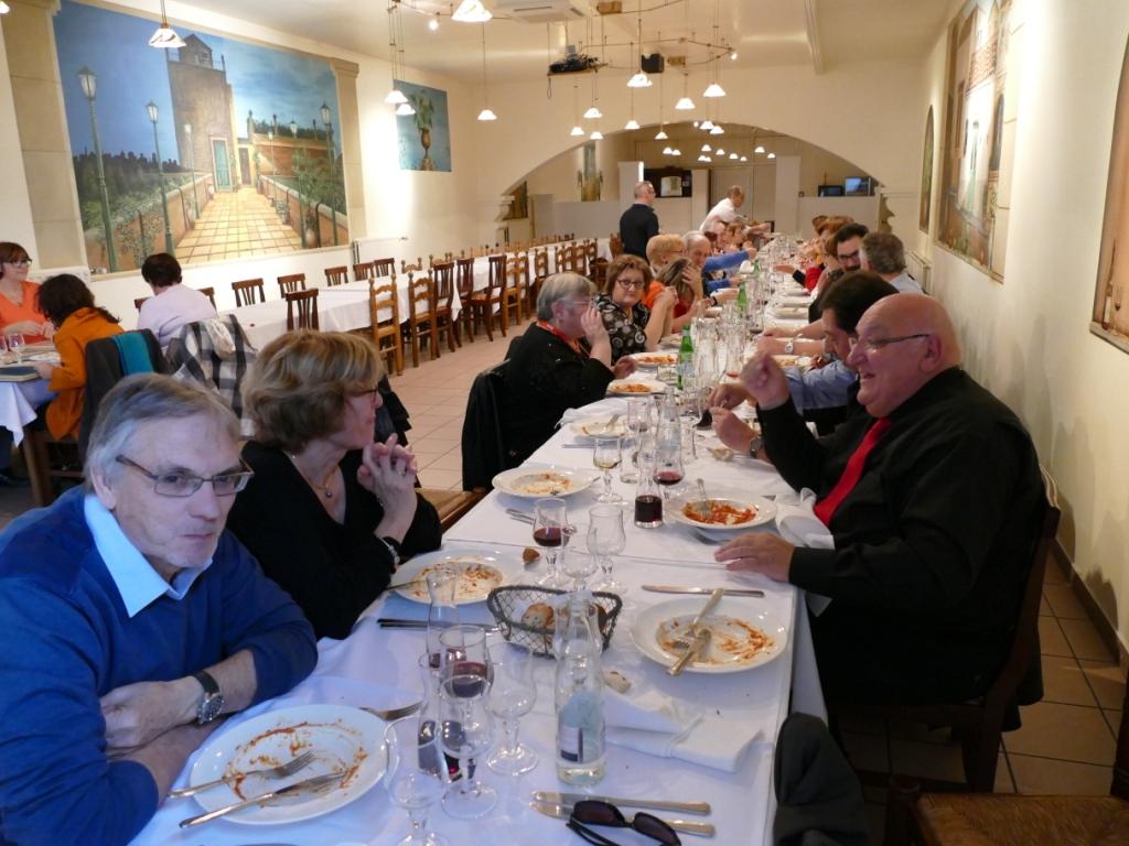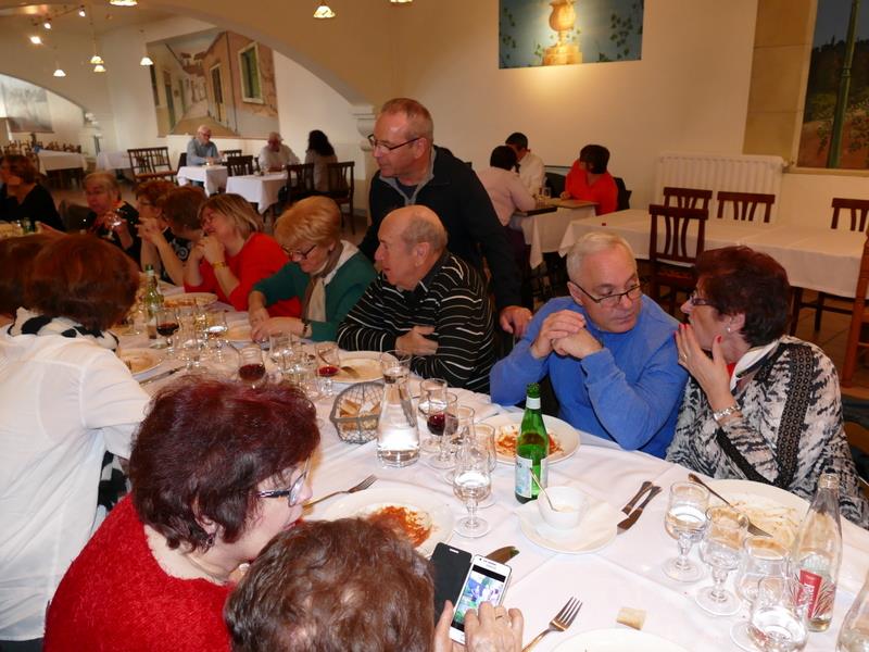 Nous avons largement le temps de nous restaurer avec les pâtes à la sauce tomate, l’escalope milanaise, la forêt noire, le café, le digestif, le tout accompagné de vins, eaux et de…bonne humeur.